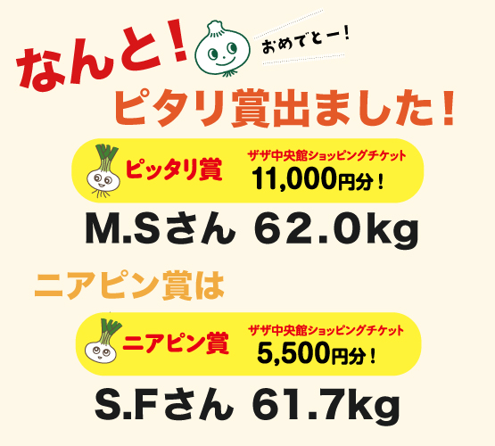 詰めた新玉ねぎの重さが上位5以内に入ると、庄島農縁さんの畑で収穫体験をスペシャルプレゼント!