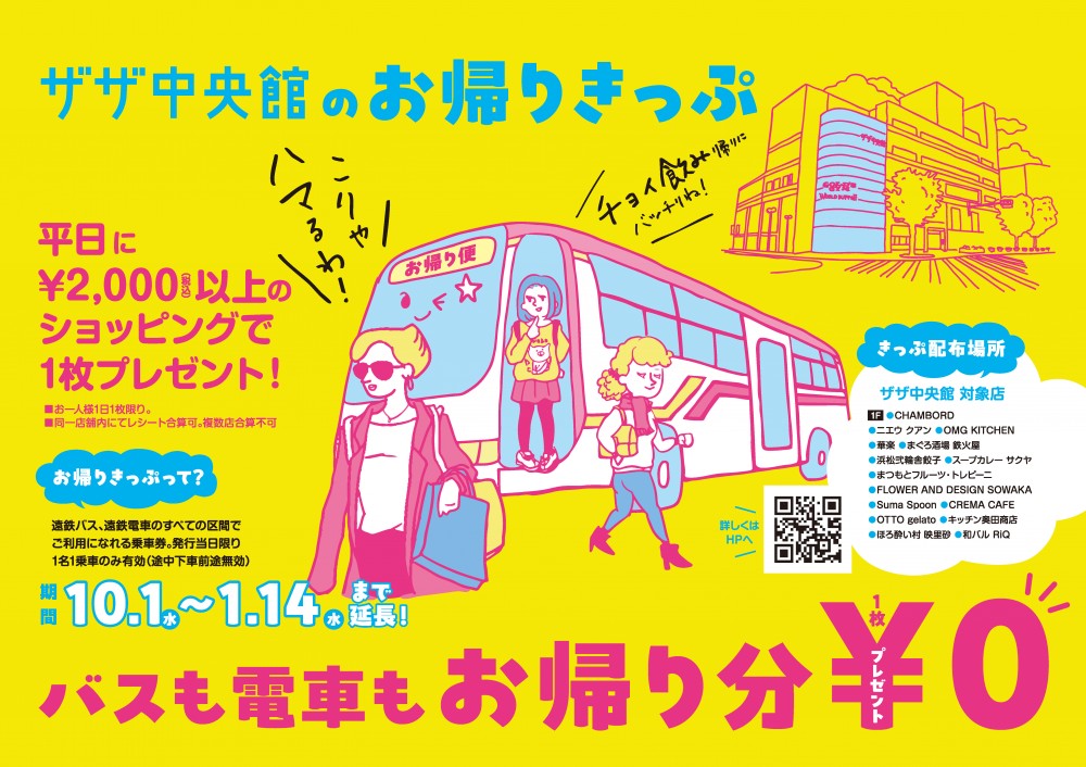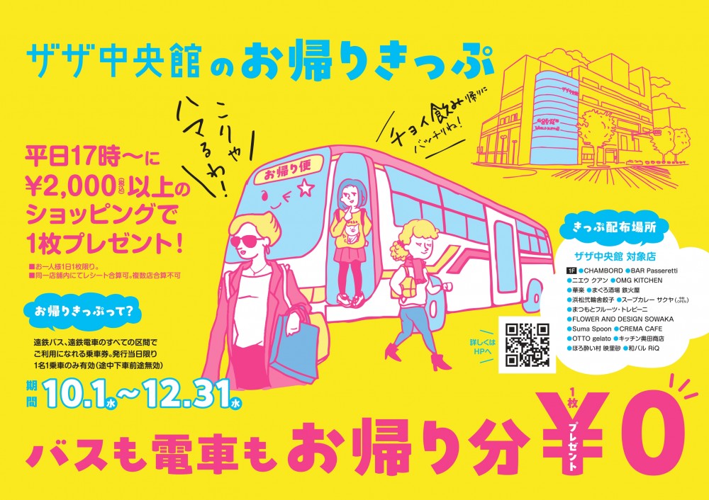 10月1日から、ザザ中央館でもお帰りきっぷサービスが期間限定でスタート!