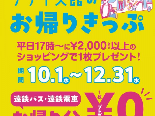 ・お帰りきっぷはお買い物をした店舗でお会計時にお渡しします