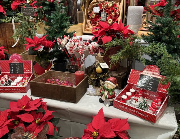 フラワーショップならではの華やかなクリスマスグッズが勢ぞろい。